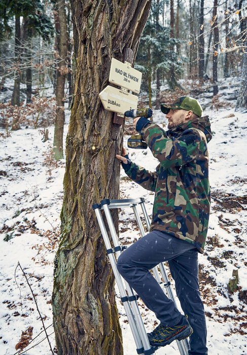 Vyhřívaná softshellová bunda Narex v trendy kamuflovaném designu je ideálním doplňkem pro práci